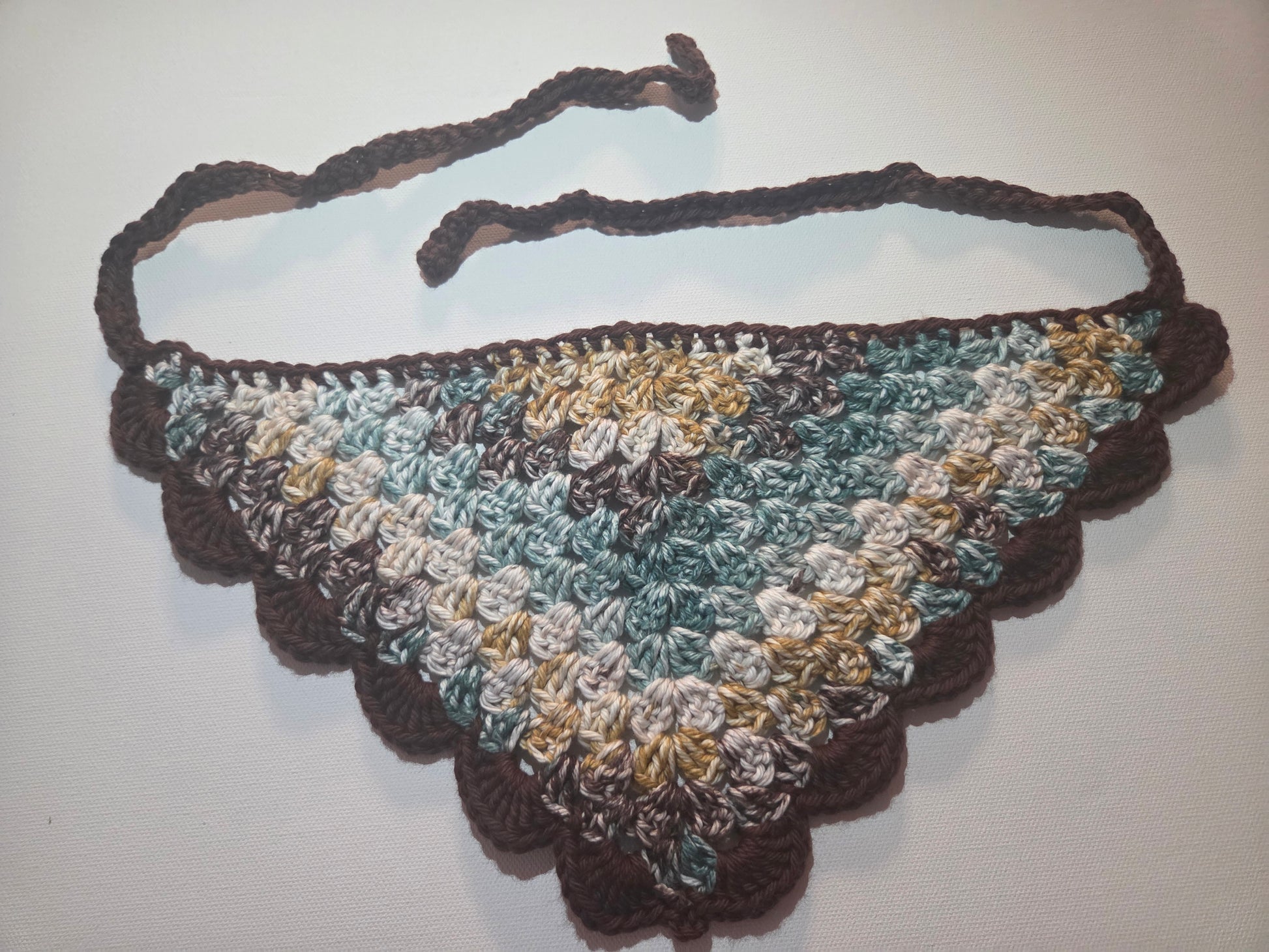Emerald Pine Granny Stitch Bandana with Brown Trim